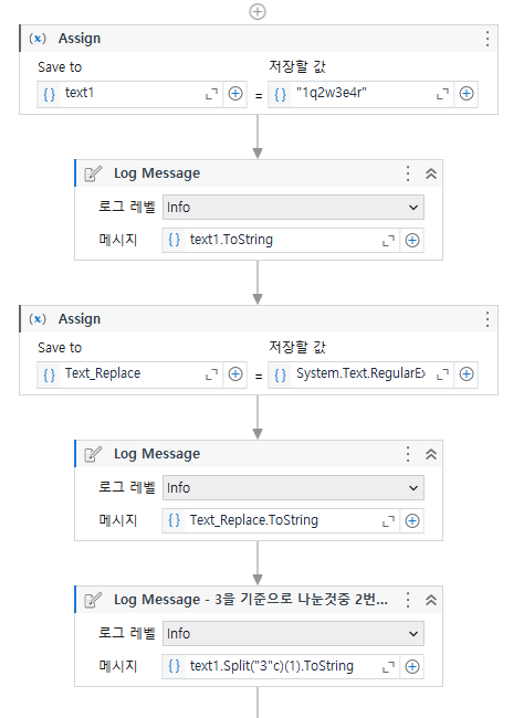 Assign 부분 Text_Replace = System.Text.RegularExpressions.Regex.Replace(text1, "[^0-9]+", String.Empty)