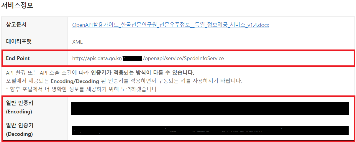 4.End Point와 일반 인증키(Encoding) 조합하여 원하는 년도 및 날짜 입력