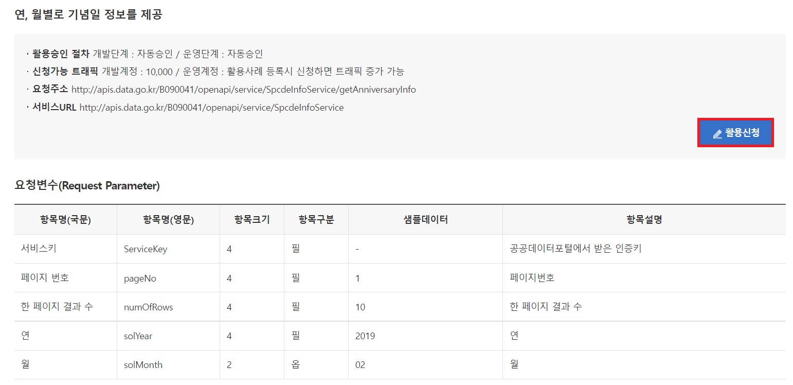 공휴일 API 사전 작업