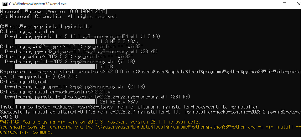 exe 파일은 이동한 경로에 dist폴더를 보시면 있을 겁니다