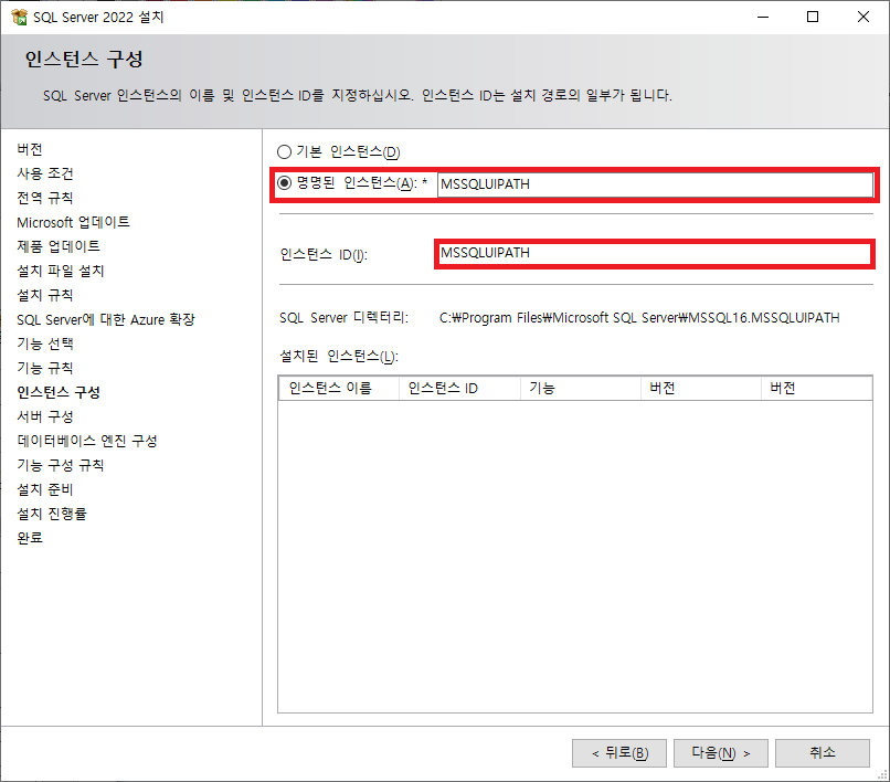 10. 명명된 인스턴스 : MSSQLUIPATH 입력 다르게 해도 무방함