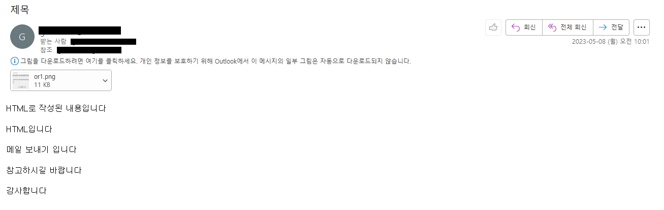메일 본문을 보시면 HTMLBody로 되어있는데 HTML 형식으로 메일 발송하게 됩니다