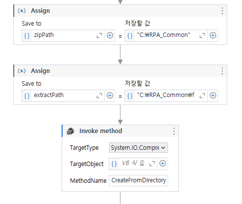 invoke method부분에는 TargetType을 System.IO.Compression.ZipFile
