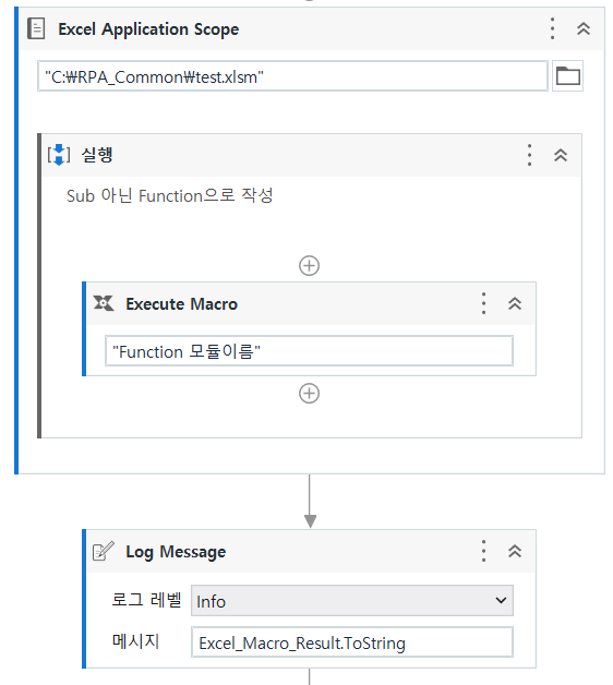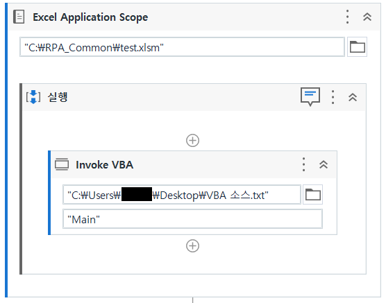 Invoke VBA와 Execute Macro둘다 사용하기 위해서는 Excel Scope를 사용해야 한다